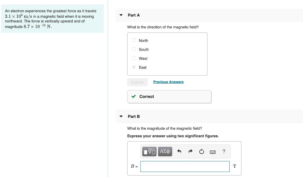 An electron experiences the greatest force as it travels 37106ms in a magnetic field when it is moving northward. So we want to find the magnitude and direction of the magnetic field so we can calculate the force from the magnetic. II An electron experiences the greatest force as it travels 28 times 106 mathrmm mathrms in a magnetic field when it is moving north-ward.
